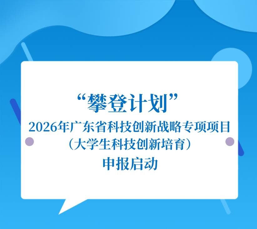 参照团省委《关于开展2025年广东省科技创新战略专项资金(大学生科技创新培育)项目申报的通知》,启动我校2026年广东省科技创新战略专项资金(大学生科技创新培育)项目申报工作